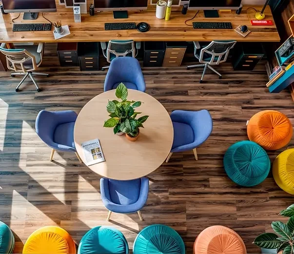 Nie projektujemy uniwersalnych przestrzeni. Każda firma ma inny sposób pracy, kulturę i potrzeby. Oferujemy szerokie możliwości personalizacji — od układu, przez dobór mebli, po materiały, kolory i tapicerki. Uwzględniamy różne style pracy, poziomy koncentracji i preferencje użytkowników.