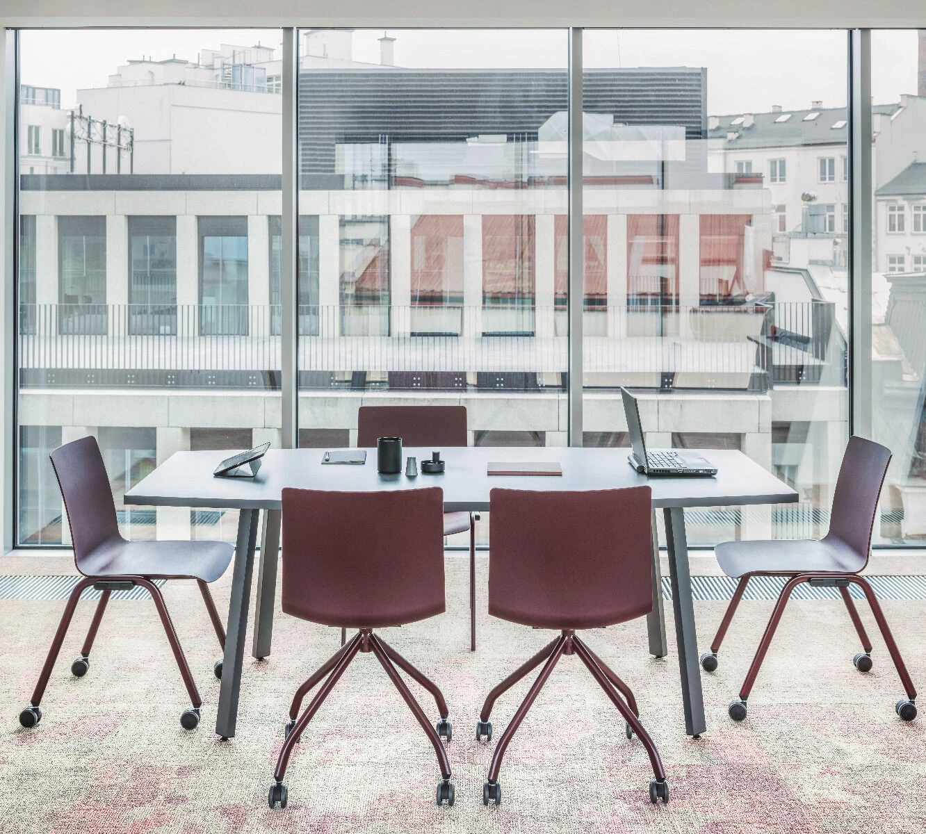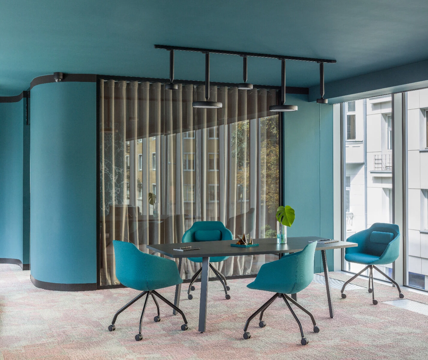 - mobilne krzesła konferencyjne, pozwalające na szybkie reorganizowanie przestrzeni,